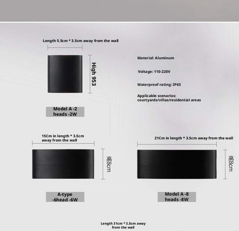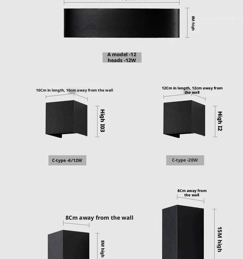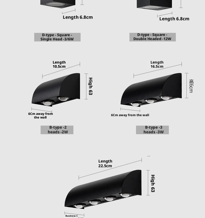 | Choose Wattage | Model A Single – Head – Black Round, 3W Warm White, Model A Single – Head – Square, 3W Warm White, Model A Double – Head – Round, 12W Warm White, Model A Double – Head – Square, 12W Warm White, Model B Square 2 – Head (Black), 2W Warm White, Model B Square 6 – Head, 6W Warm White, Model B Square 8 – Head, 8W Warm White, Model B Square 12 – Head, 12W WarmWhite, Model C Semicircular 2 – Head (Black), 2W Warm White, Model C Semicircular 3 – Head (Black), 3W Warm White, Model C Semicircular 4 – Head (Black), 4W Warm White, Model D Square, 6W Warm White, Model D Square, 12W Warm White, Model F Single – K (Black), 6W Warm White |